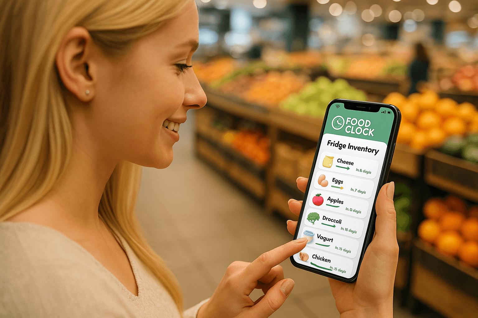 Food Clock is a mobile app that helps users efficiently manage food stored in their fridge, track expiration dates, and discover personalized recipe suggestions based on what's available. The design aims to reduce food waste, ease grocery planning, and foster healthier eating habits.
